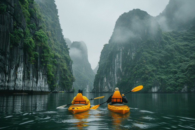 - Halong Bucht erleben: Zwei Tage auf dem Wasser mit Kajak, Sonnenuntergang an Deck und Übernachtung in der Bucht.