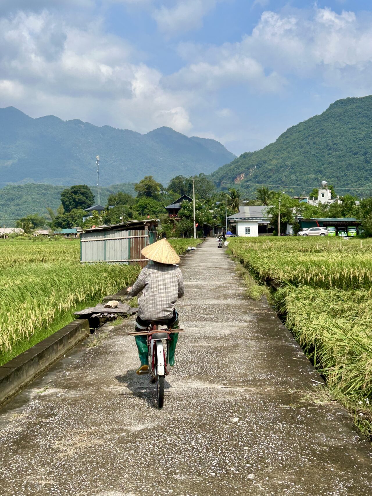 Zum Abschluss wird es noch einmal weit. Mai Chau liegt in einem offenen Tal, eingerahmt von Bergen und endlosen Reisfeldern, und strahlt eine besondere Ruhe aus. Du erkundest die kleinen Dörfer entspannt mit dem Fahrrad, kommst mit Einheimischen ins Gespräch und bekommst Einblicke in den Alltag ethnischer Minderheiten, die hier seit Generationen leben.